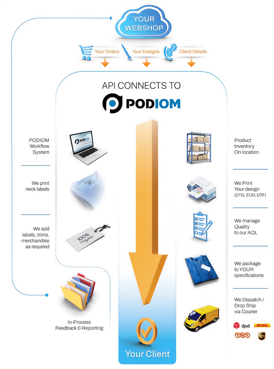 Print-on-Demand is more complex than meets the eye. It is not only about DTG printing but mostly about the process and online order exchange between API and the printer, about the inventory management and short turn-around time (even 24-48h).